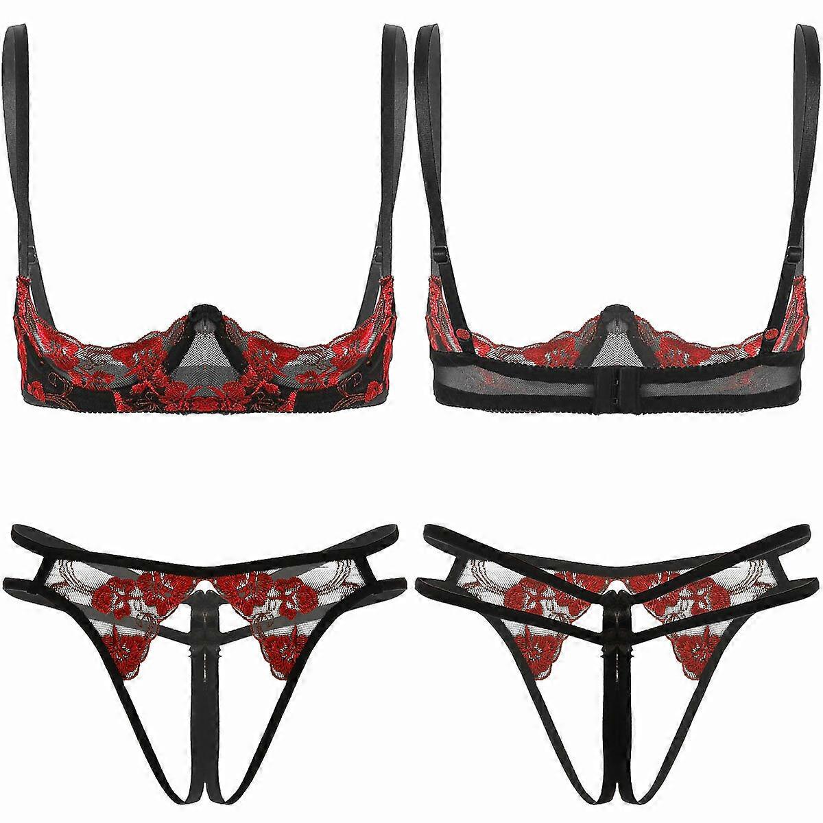 Women's Floral Lace Lingerie Set Bra G-string Thong Babydoll Nightwear Sleepwear