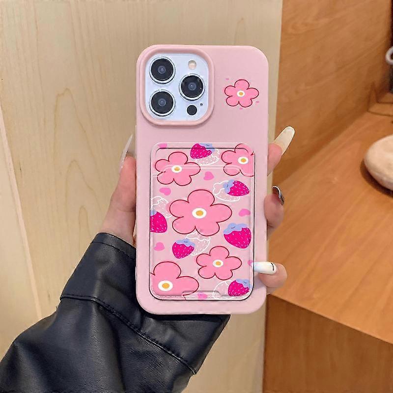 Cute Strawberry Flower Pattern Phone Case with Card Slot, Anti-drop & Wear-resistant Phone Protective Cover, Phone Accessories Compatible wi