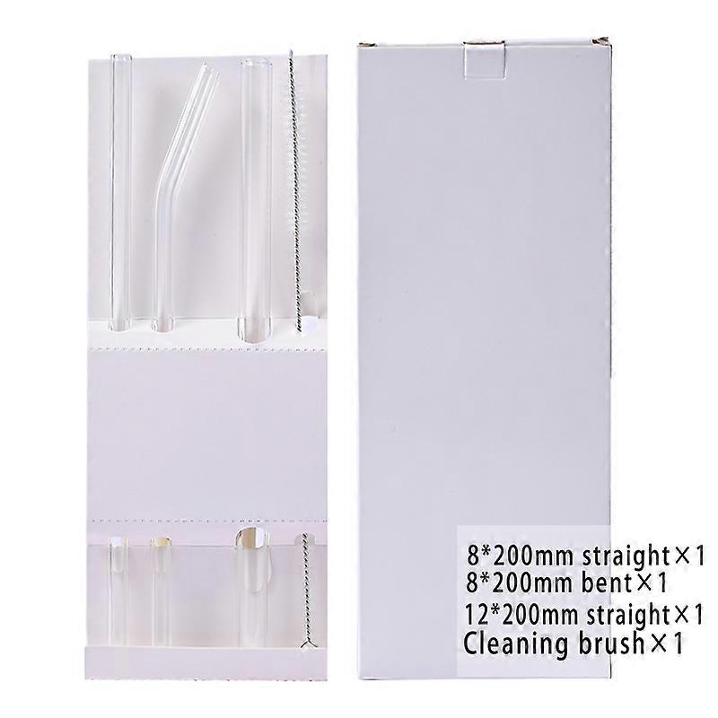 Pink Reusable Glass Straw Set 12mmWide, 8mmWide, Suitable For Juice, Solid Drinks, Milkshakes, Plus Complimentary Cleaning brush