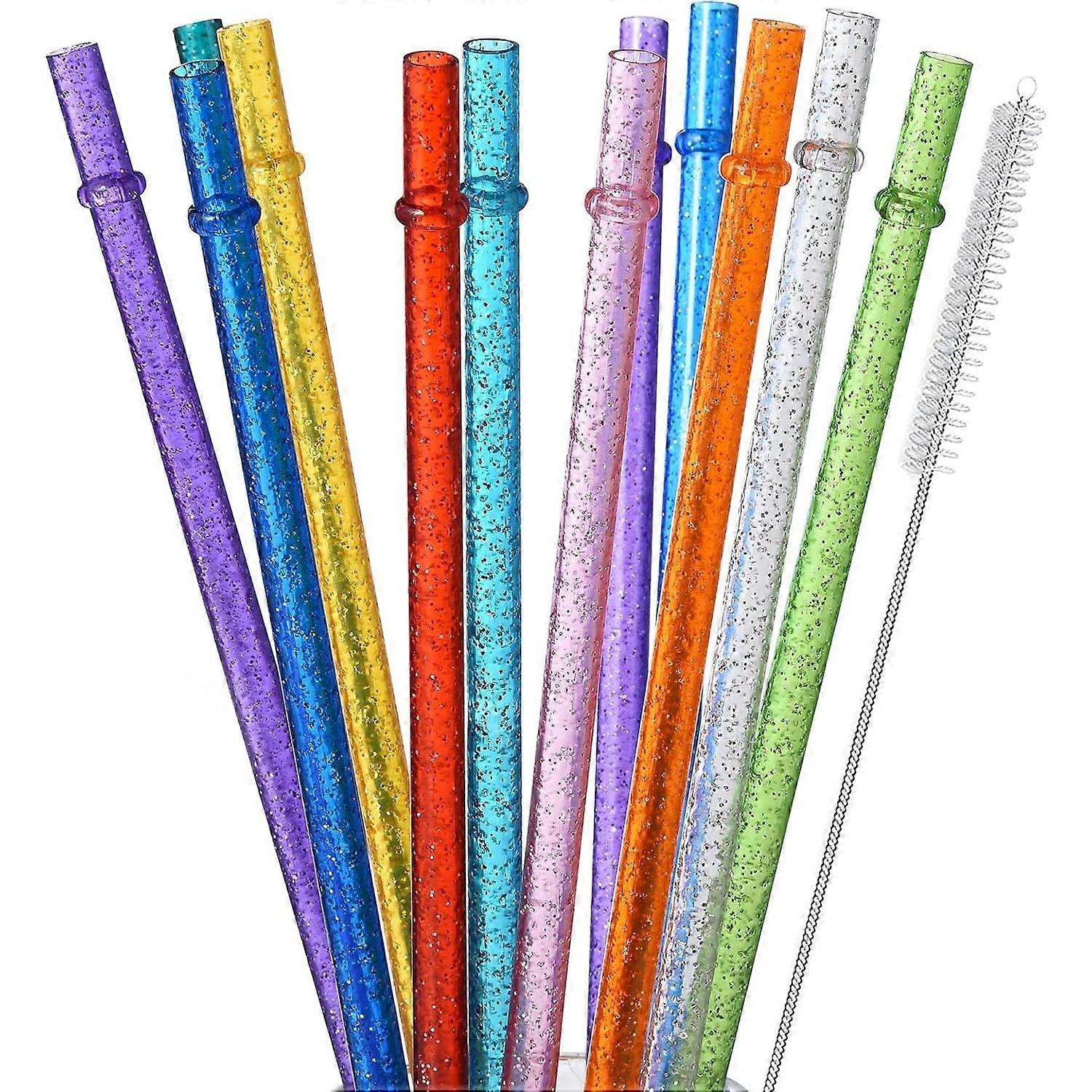 12-Pack Reusable Clear Plastic Glitter Straws,13 inch Extra Long Tumbler Straws for Cups,1 Gallon,64oz40oz Water Bottles