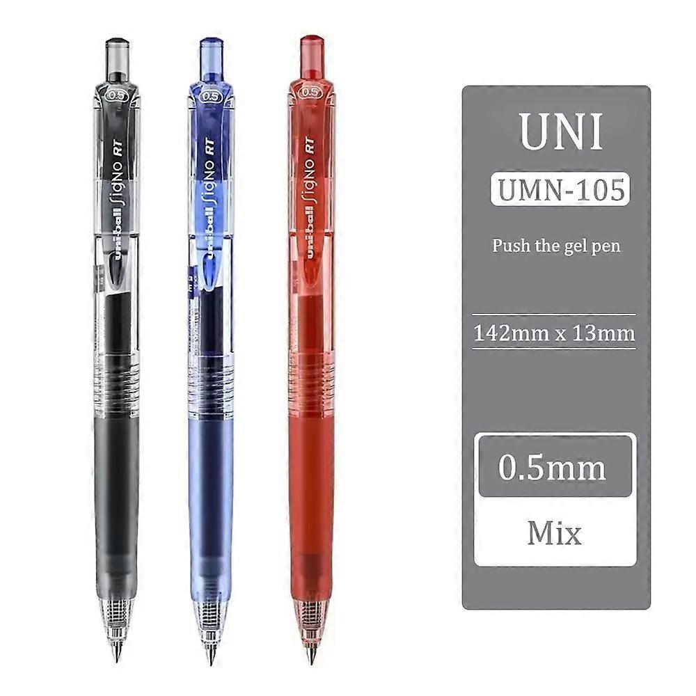 High-concerned chemical : None<br>Gel Pen's Ink Feature : Normal<br>Gel Pen's Ink Type : Gel-Ink<br>Material : Plastic<br>Erasable Or Not : No<br>Writing Point : 0.38/0.5mm<br>Use : Office & School Pen<br>Model Number : UMN-138/105<br>Brand Name : uni<br>Origin : Jp(origin)<br>Type : Gel Pen<br>Color : Black, Red, Blue<br>