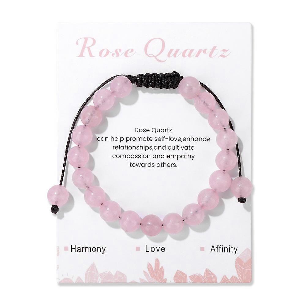 New Natural Stone Amethysts Bracelet with Card 8mm Pink Quartz Fluorite Beads Bracelet Adjustable for Women Men Couple Jewelry