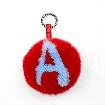 Real Rabbit Fur Ball Initial letter Pompom Keyring Handbag Charm Pendant