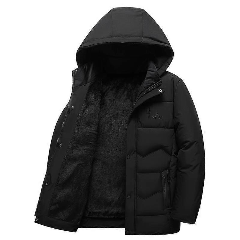 TJL Men's Ultra-Warm Black Hooded Puffer Jacket - Winter Thermal Insulated Coat with Fleece Lining Classic Menswear for Outdoor Activities