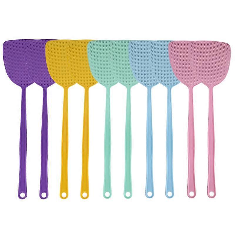 SOFT-Fly Swatter 10 Pack Plastic Long Handle Fly Swat Manual Swat Pest Control For Flies And Mosquito Multi-Color Random