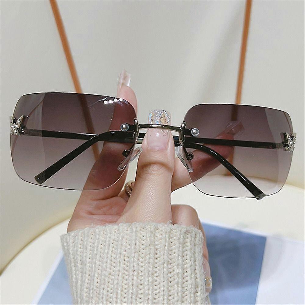 UV Protection Vintage Rimless Rectangle Y2K Sunglasses for Women Sun Glasses Rhinestone Butterfly Sunglasses