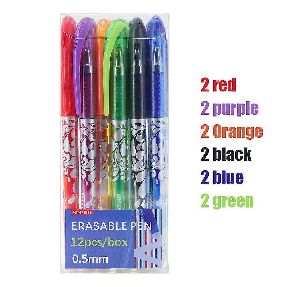 12Pcs/1Box Creative Boxed Erasable Gel Pens, 0.5mm Washable Handle Magic Refills Rod Stationery School Office Writing Supplies