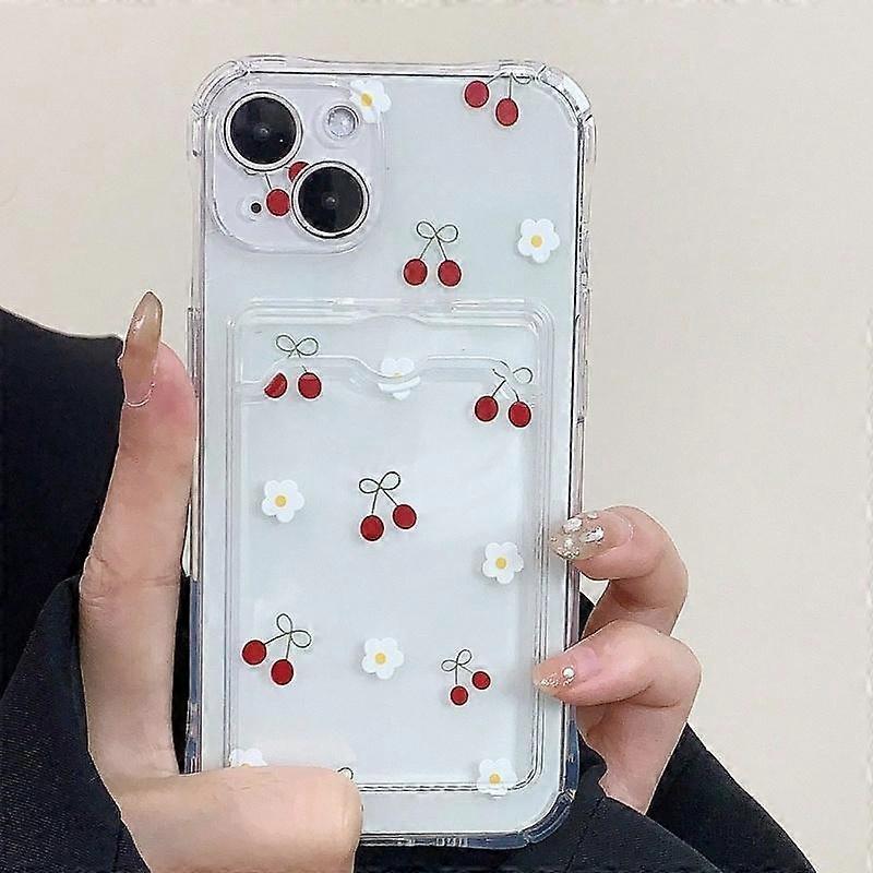 Cherry & Daisy Pattern Clear Phone Case, Decorative Phone Protector Cover, Phone Accessories Compatible with iPhone 15 14 13 12 11 X XS Xsma