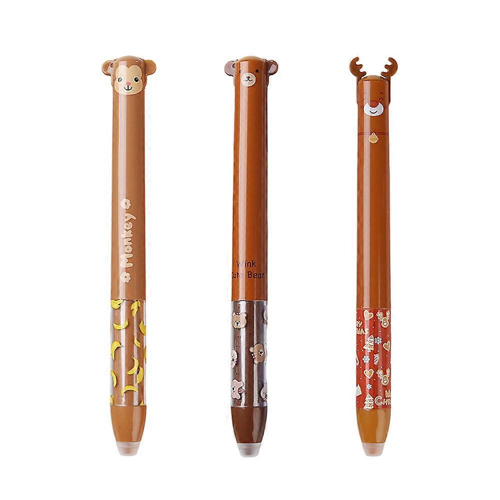 3Pcs/Set 2 in 1 New Creative Animals Erasable Gel Pens Lion Panda 0.5mm 0.5mm Blue Red Refill Two-Color Side Press Erasable Pen