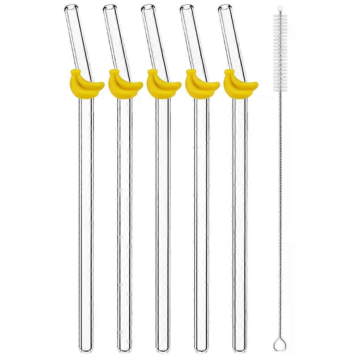 5pcs High Borosilicate Glass Straw Set Fruit Creative Stickers Straw Milk Tea Juice Cocktail Straw with Brush Bar Accessories