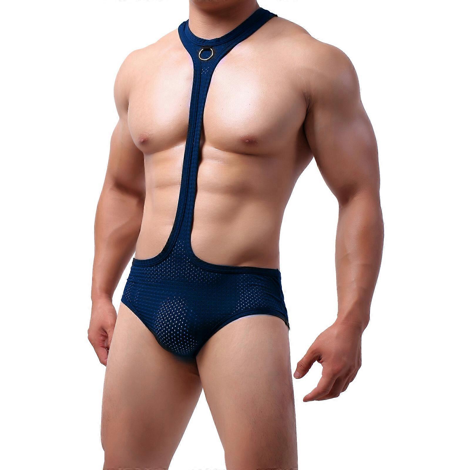 Sexy Men Underwear Mesh Boxer Briefs Leotard Bodysuits Wrestling Singlet Pajamas