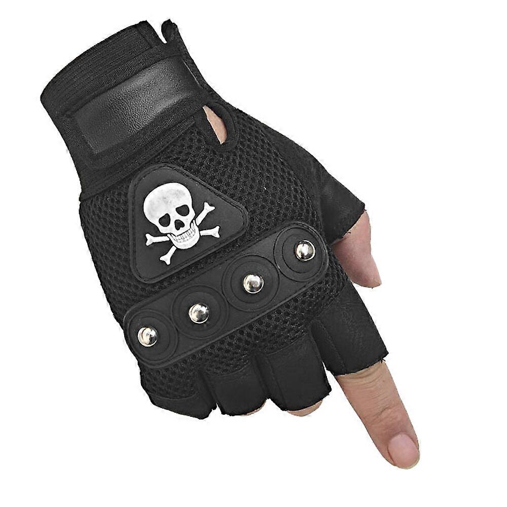 Mens Rock Biker Skull Gloves Motorcycle Skeletal Rivet Driving Fingerless Mitten