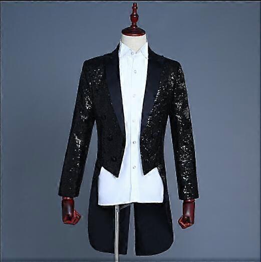 Chic Men Tuxedo Bling Glitter Suit Jacket Formal Tail Coat Club Wedding Coat