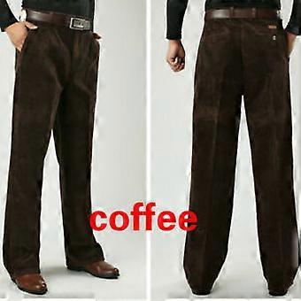 Men Thick Corduroy Pants Pleated High Waist Loose Corduroy Trousers Long Casual