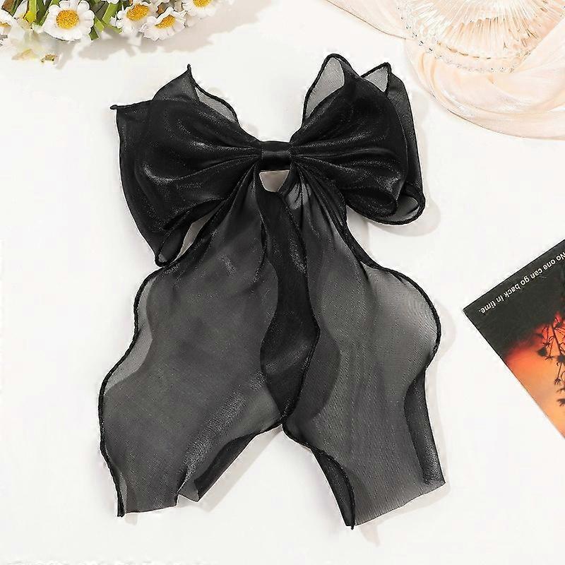 1pc Off - White Mesh Ribbon Bow with Tail Spring, Elegant and Sweet Hairpin, Cute Style, Valentine's Day Gift.