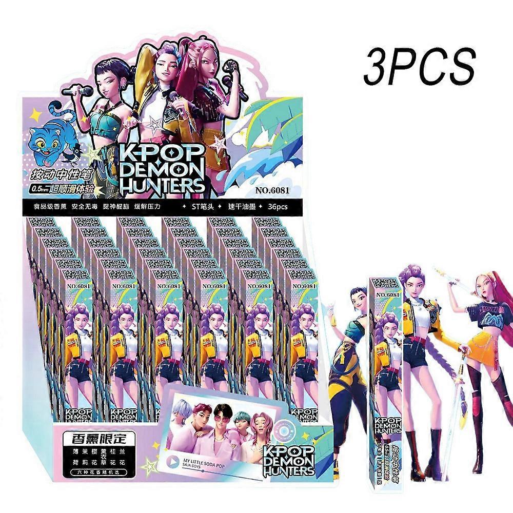 1/3/6/12Pcs KPop Demon Hunters Black Ink Pen Student Writinng Draw Gel Pen Anime Figure Stationery Study Supplies Gift 0.5mm