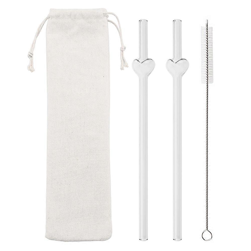 4Pcs Creative Heart Shape Reusable Glass Straws Perfect for Cocktails Iced Coffee Cold Beverages Home Drinking Decoration Gift