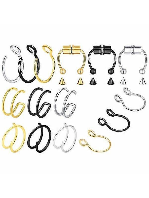 Unisex Magnetic Fake Nose Ring Set, Stainless Steel No Piercing Needed, Double Circle Design, Arrow Tip Replacement Head, 8mm Size