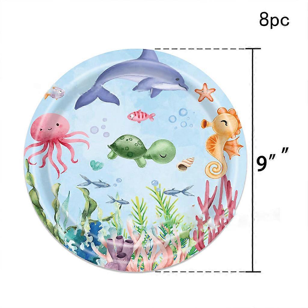 Under The Sea Party Disposable Tableware Sea Animals Paper Plates Jellyfish Dolphin Party Decor Kids Happy Ocean Birthday Decors