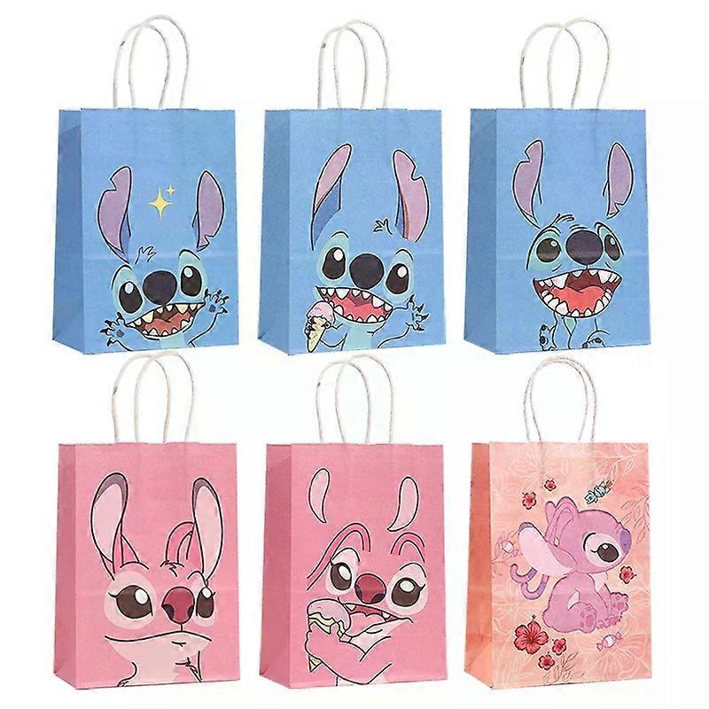 2025 6pcs Disney Lilo & Stitch Theme Cute Angel Paper Gift Bags Candy Biscuit Bag Tote Bags Birthday Party Baby Shower Supplies