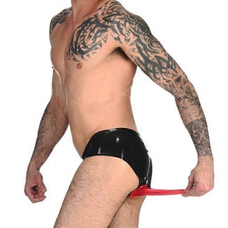 Men Latex Briefs Shorts with Anal Condom Crotch Zipper Rubber Pants for Gay Wear