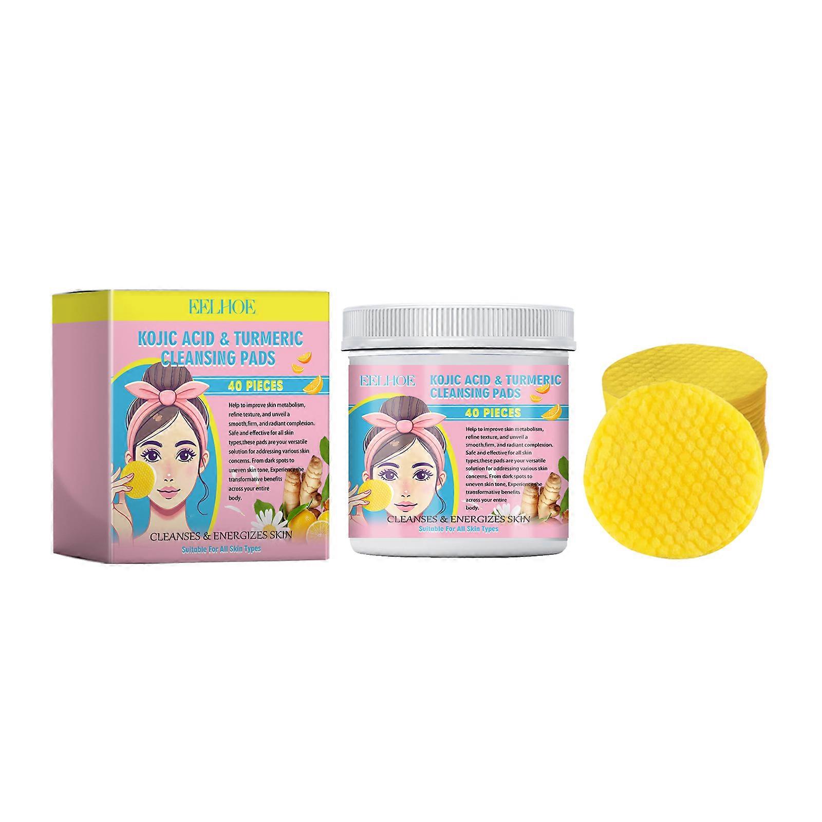 40pcs Turmeric Kojic Acid Facial Cleansing Pads Exfoliating Cleaning Remover Pores Dirt Moisturizing Daily Face Clean Skin Care