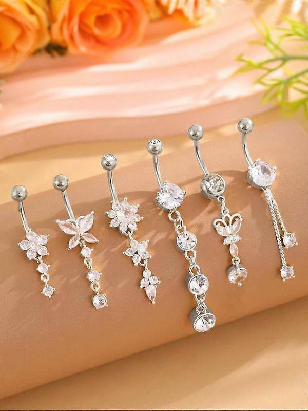Women's Elegant Butterfly & Flower Design Belly Rings, Cute Trendy Belly Piercing Jewelry, Fashion Body Jewelry for Party & Daily Decor