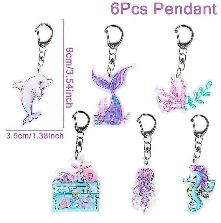 6pcs Little Mermaid Keychains Mermaid Keychains Happy Birthday Party Decoration Kids Under The Sea Party Baby Shower Decoration