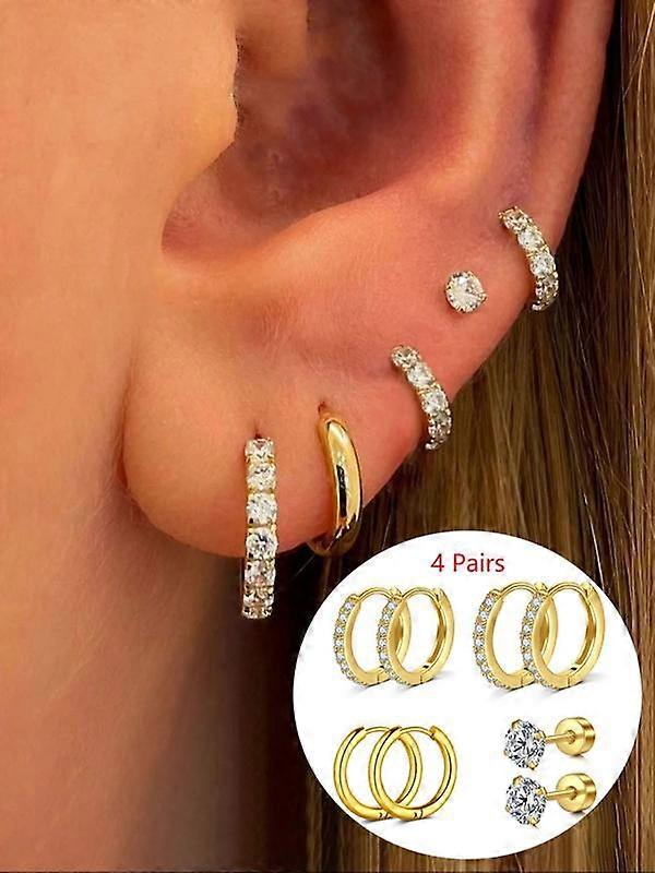 4 Pairs Cz Earrings Set, Silver Color Studs, Hypoallergenic Cartilage Earrings, Unisex Fashion Gift for Multiple Piercings