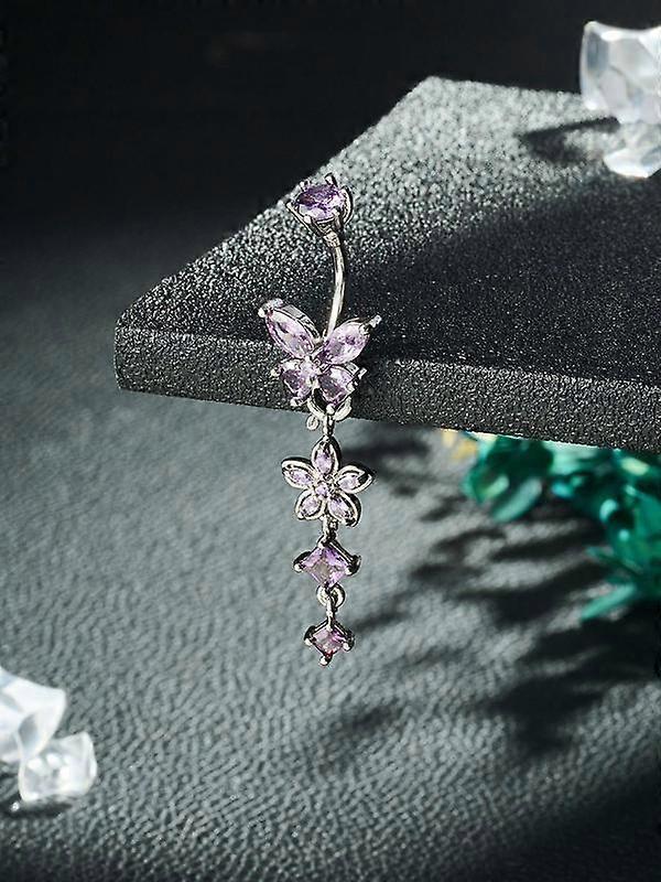 Y2K Butterfly Belly Button Ring with Cubic Zirconia, Flower Pendant Design, Stainless Steel Navel Jewelry for All Occasions, Perfect Gift