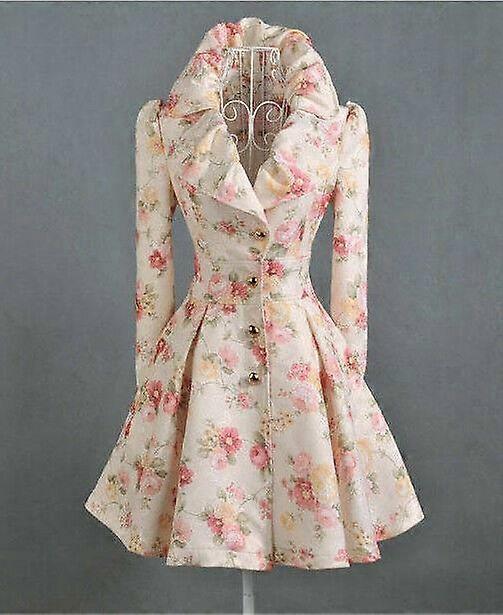 Rose Printing Women's Trench Coat Slim Fit Princess Dress Vintage Wide Lapel Hot