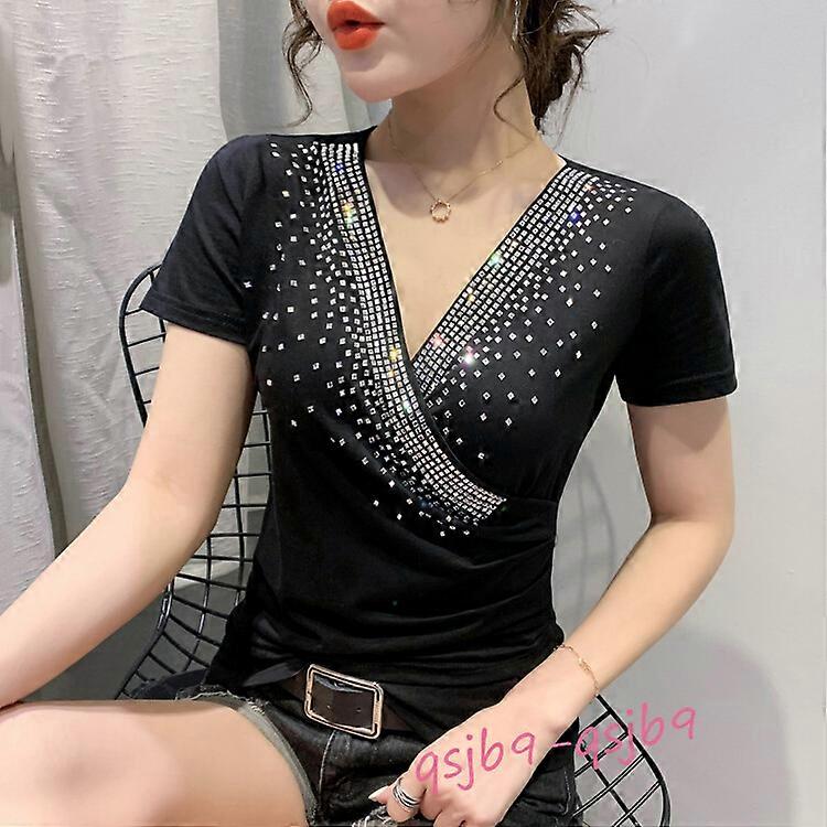 Condition:New without tags<br>Pattern:Solid<br>Sleeve Length:Short Sleeve<br>Neckline:V-Neck<br>Occasion:Casual<br>Size:Asian M-2XL<br>Seller notes:��Fit weight 100-145 lbs lady��<br>Material:Cotton Blend<br>Fabric Type:Cotton<br>Accents:Rhinestone<br>Vintage:No<br>Fit:Slim<br>Brand:Unbranded<br>Size Type:Petites<br>Department:Women<br>Type:T-Shirt<br>Style:Basic