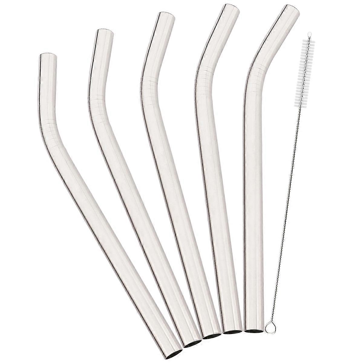 5pcs Colofrul Wide 12mm Stainless Steel Bent Straw Set Fruit Juice Milkshake Cocktail Bubble Tea Drinking Straw Bar Accessories