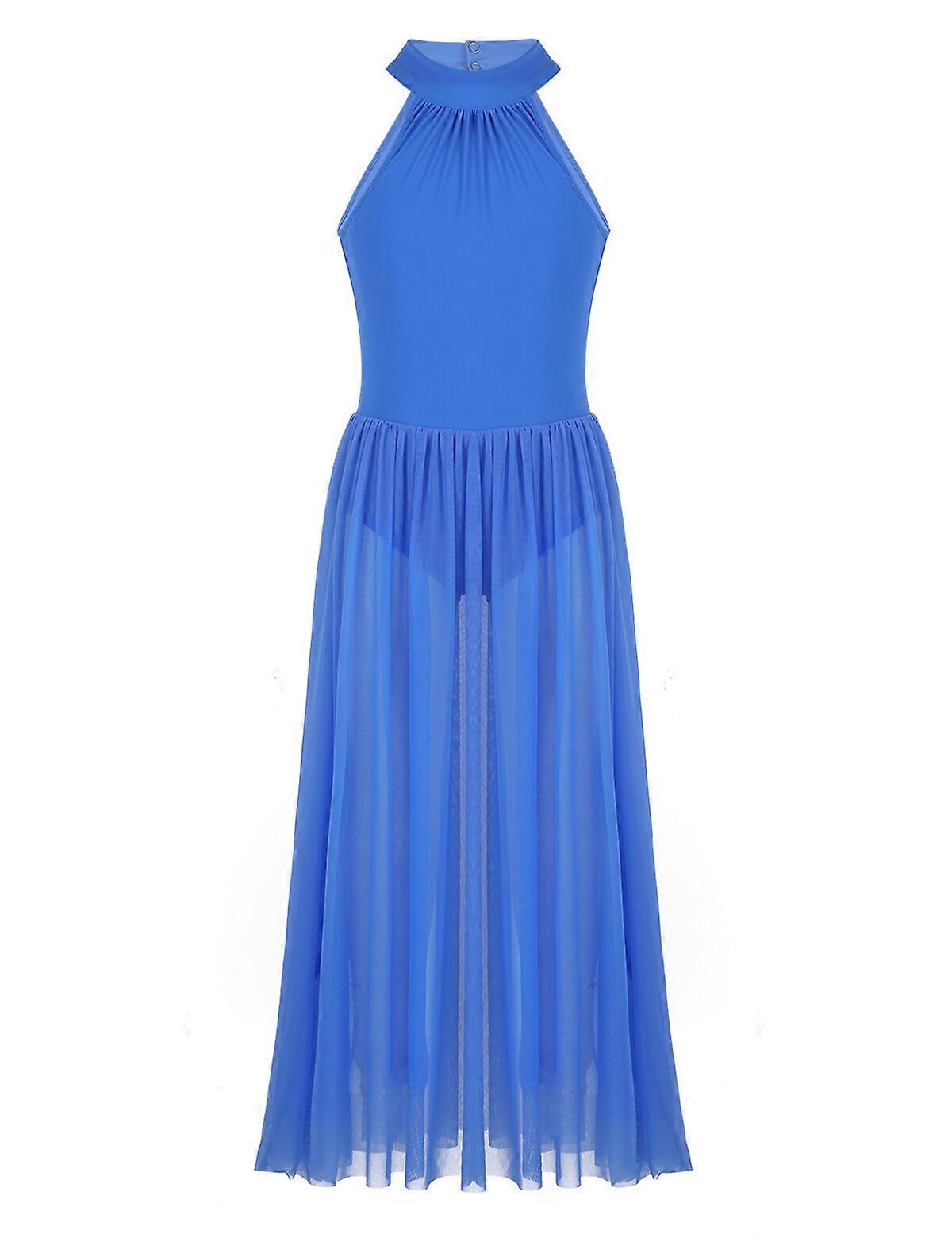 Girls Lyrical Dress Mock Neck Leotard with Long Mesh Maxi Skirt Dance Costume