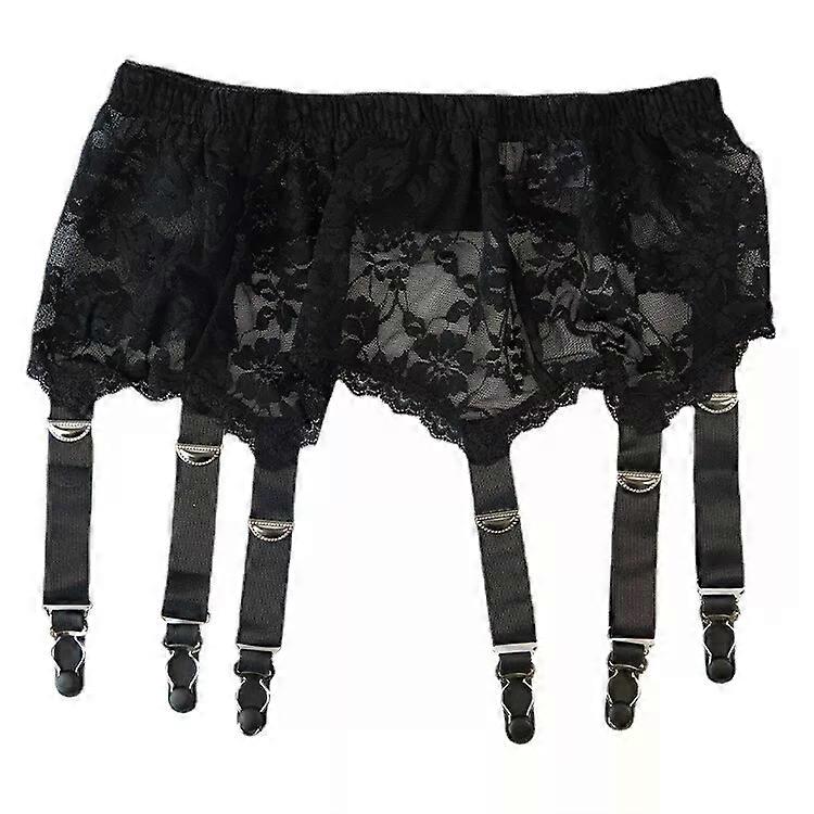 Allacki Black Floral Lace Garter Belt 6 Straps Suspender Belt Sheer Lingerie
