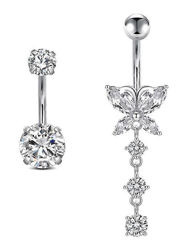 Rhinestone Decor Belly Button Ring, Butterfly Wing Design Belly Piercing Jewelry, Body Jewelry For Women & Girls