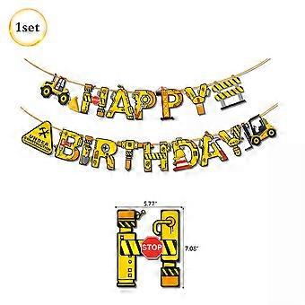 Engineering Vehicle Birthday Disposable Tableware 4D Balloon Cake Topper Banner Construction Boys Birthday Party Favors Supplies