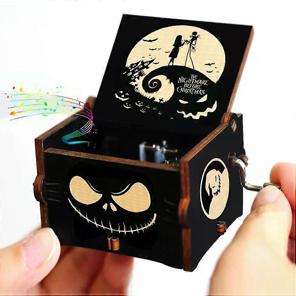 Hot 1pcs Antique carved Wooden Hand Crank Happy Halloween Music Box You are my sunshine Halloween Decor Christmas Birthday Gift