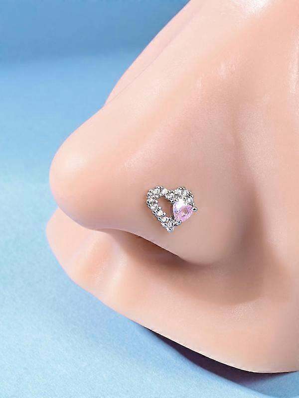 Cute Heart Shaped Nose Ring, Rhinestone Decor L Shaped Nose Ring, Fashionable Body Jewelry for Women & Girls, Trendy All-match & Exquisite J