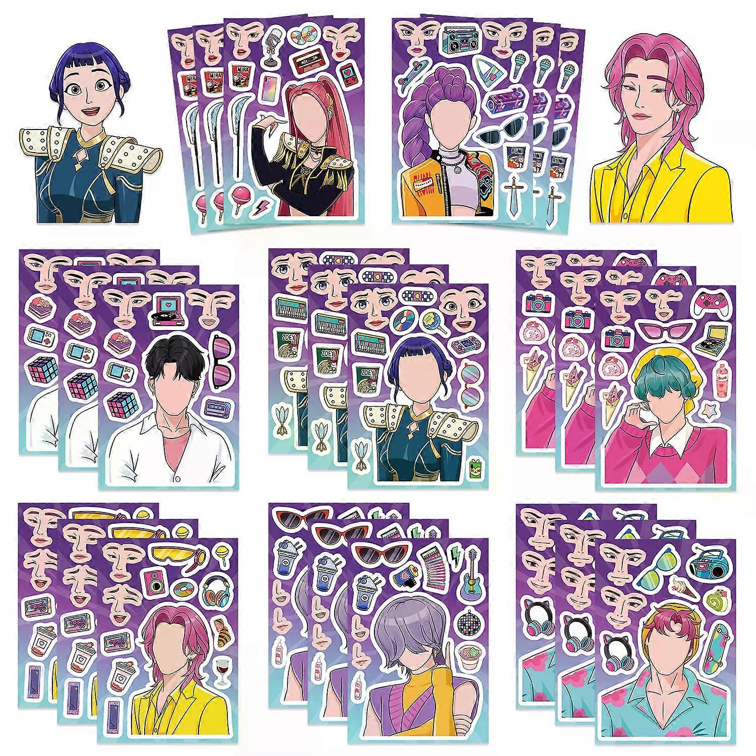 8 Sheets Funny K pop demon Make A Face Puzzle Stickers Kids Make Your Own DIY Game Children Jigsaw Education Toy Gift