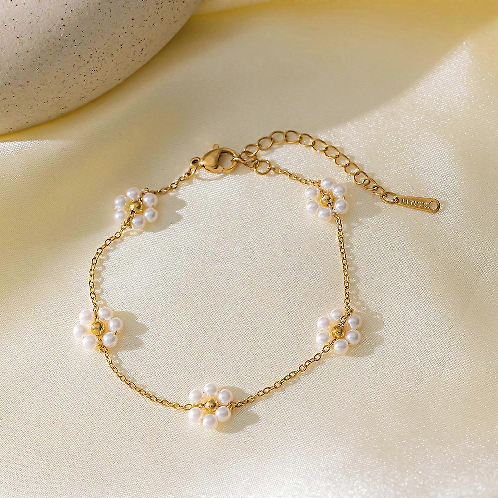 Flower Bracelet Imitation Pearl 18k Gold Plated Stainless Steel Chain Bracelet Tarnish Free Bracelet for Women