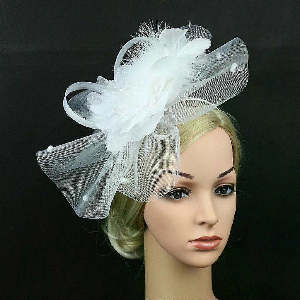 Women Fascinator Feather Headwear Tea Party Wedding Hat Mesh Flower Hair Clip