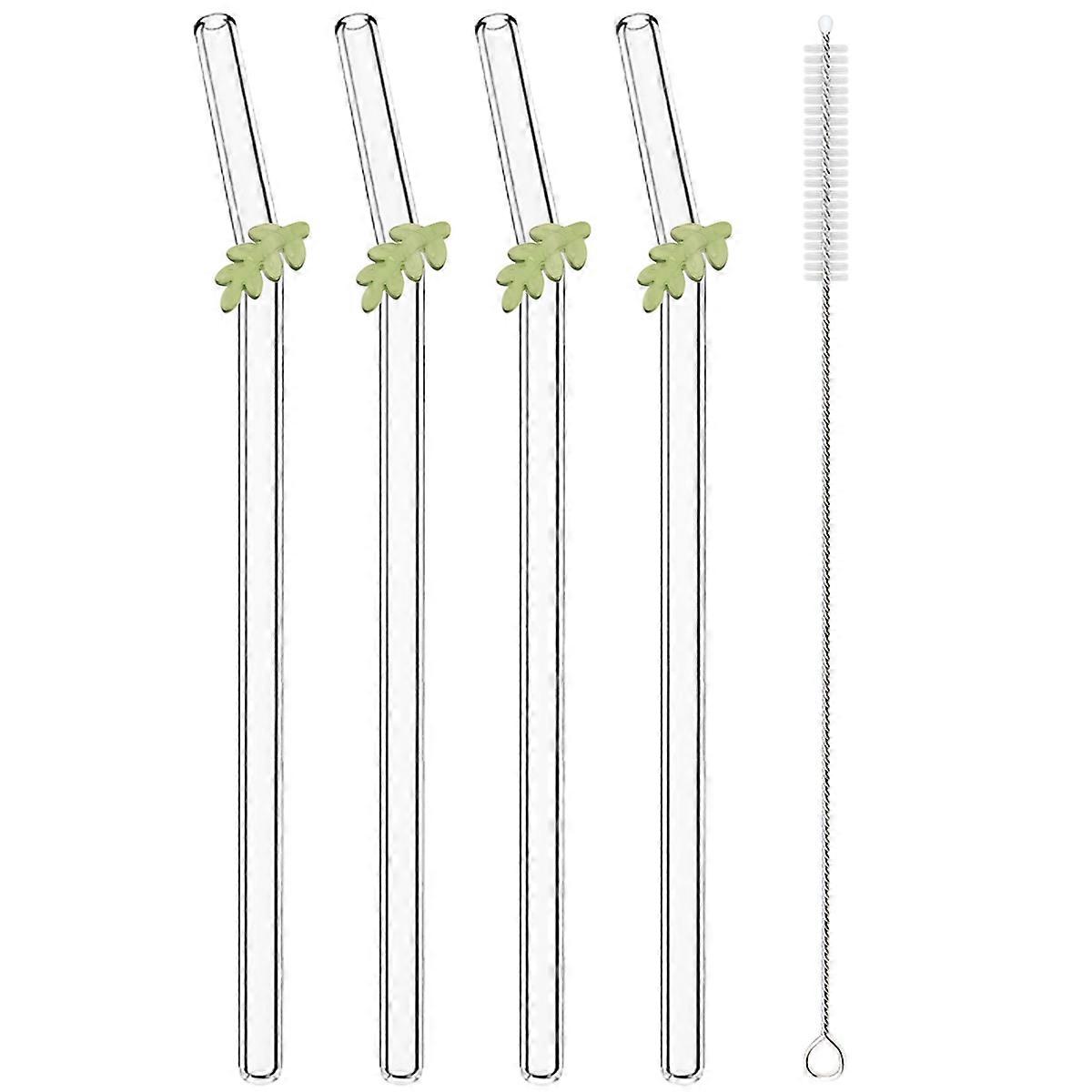 4pcs Christmas Glass Straw Milk Tea Juice Cocktail Straw with Brush High Borosilicate Glass Straw Set Kitchen Bar Accessories
