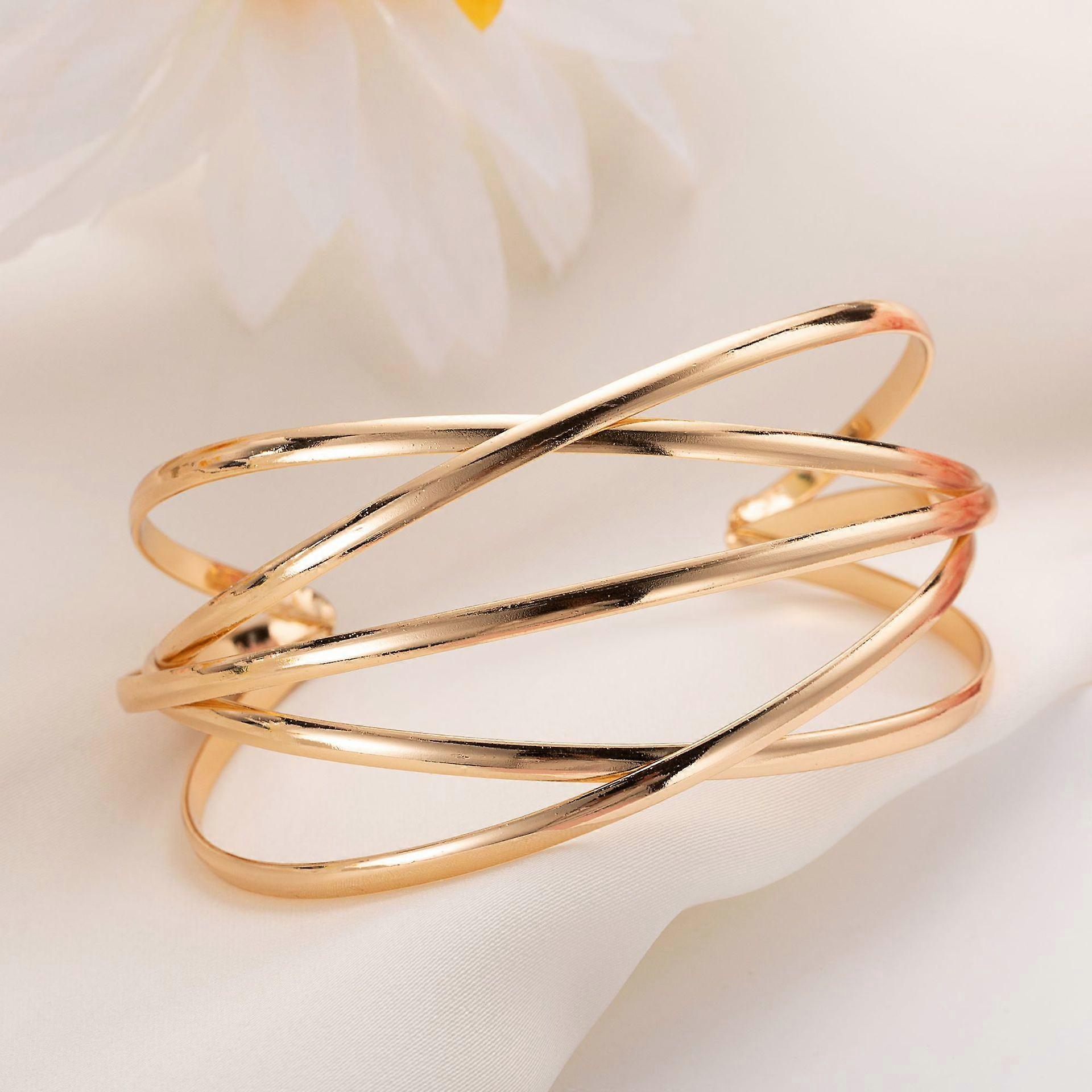 Stainless Steel Multi Layer Crossing Bangles for Women Girls Open Adjustable Arm Cuff Bracelets Special Design Jewelry Gifts