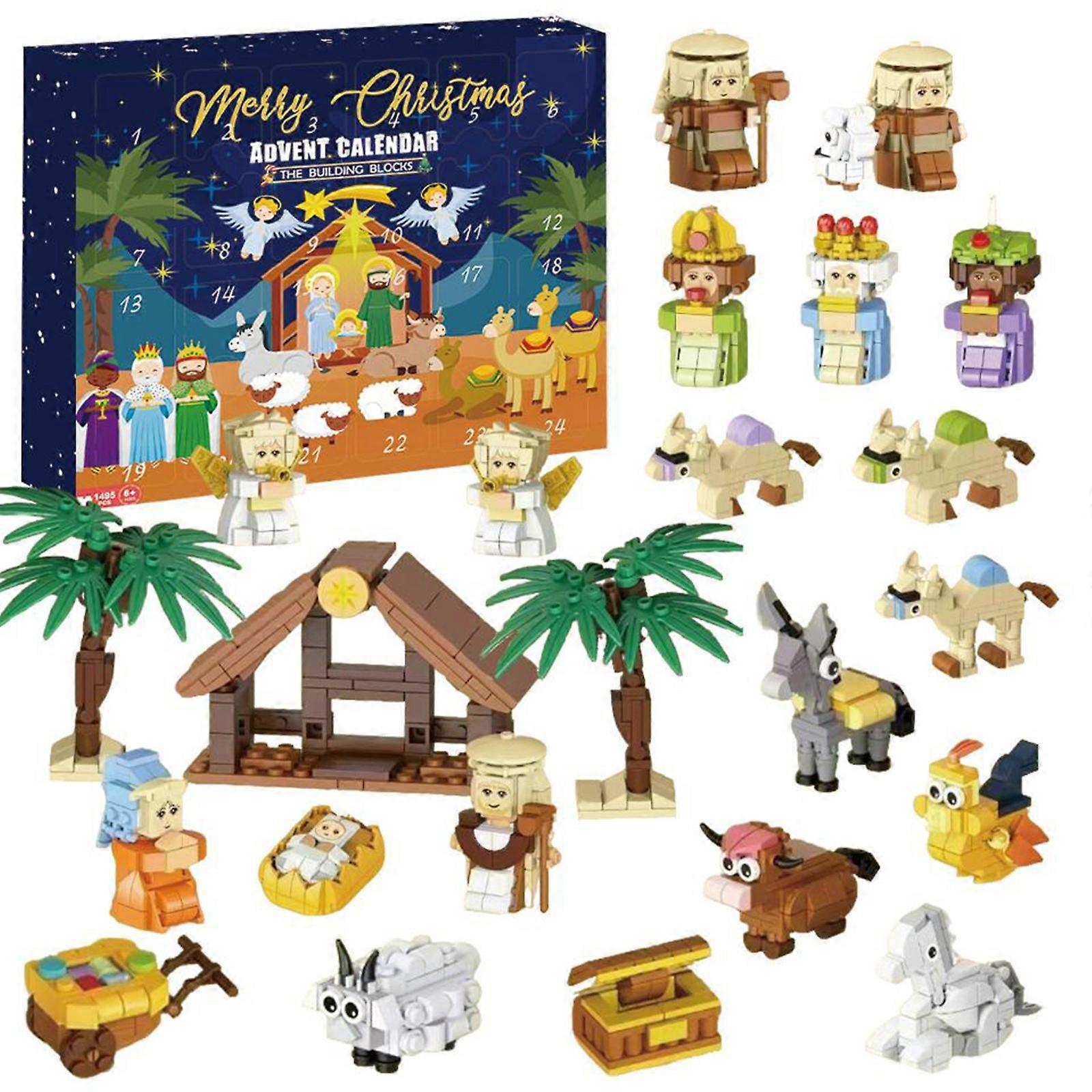 Christmas Advent Calendar Gift Box Diy Nativity Jesus Bricks Toys 24Days Countdown Calendar Surprise Christmas Home Decoration
