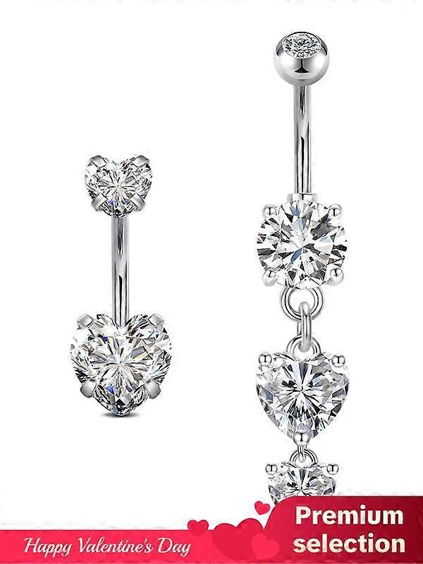 Rhinestone Heart Design Navel Nail, Fashion Stainless Steel Navel Jewelry, Double Head Body Piercing Jewelry for Women & Men, Valentine's Da
