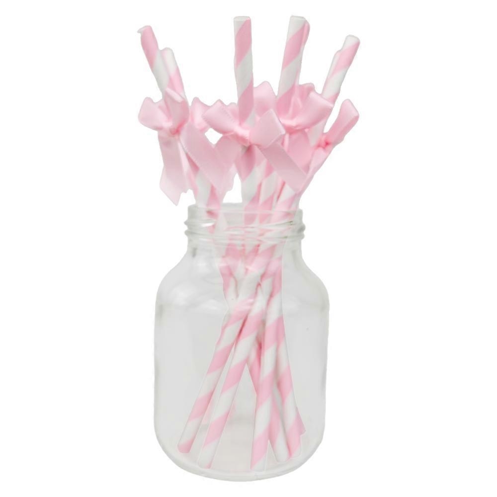10/20/30/50/100pcs Bow Pattern Pink Blue Drinking Straws Girls Birthday Party Wedding Baby Shower Decoration Supplies Gifts