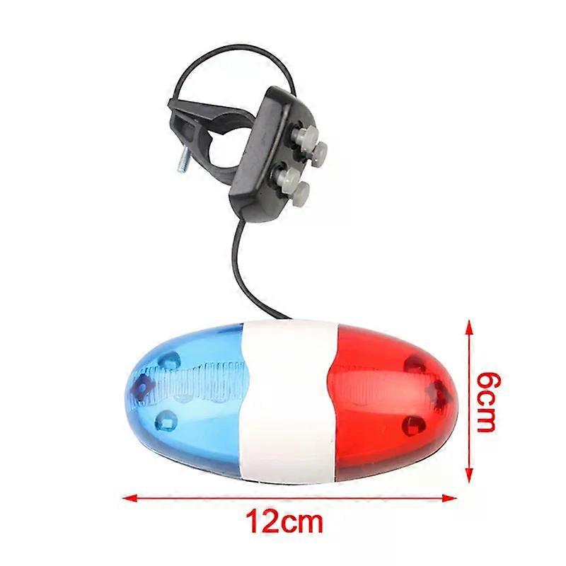 6 LED Bicycle 4 Tone Sounds Bell Plastic Cycling Equipment Police Car Light Electronic Horn Outdoor Bicycle Siren for Kid's Bike