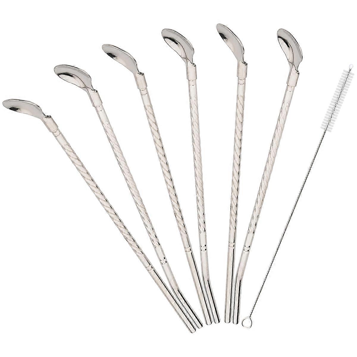 6pcs 2-in-1 Stainless Steel Straw Spoon Set Reusable Drinking Straws for Milkshakes Cocktails Coffee Juice Party Bar Accessories