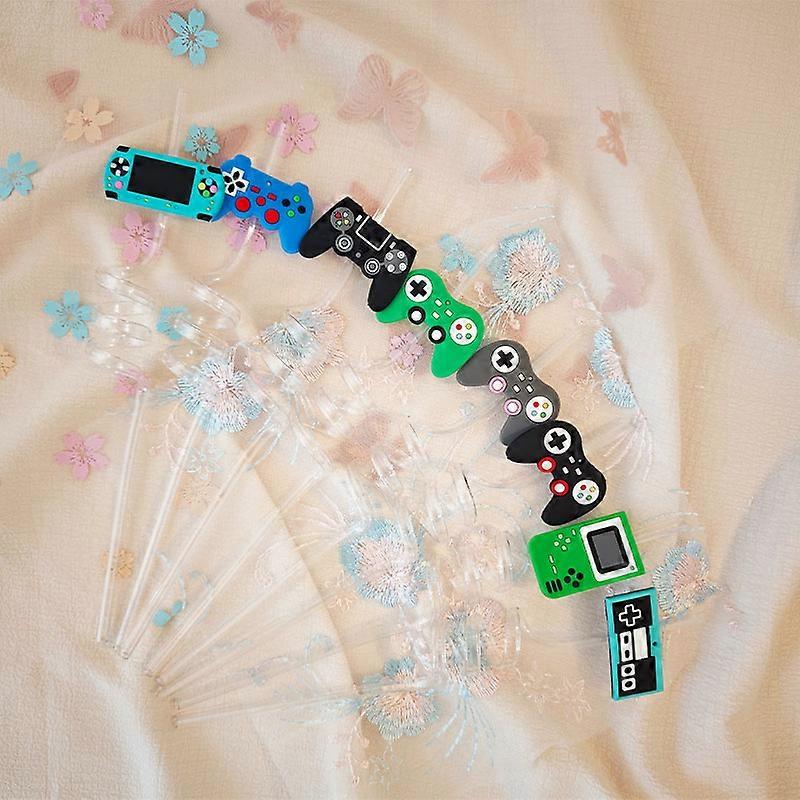 8pcs Reusable Game Controller PET High Quality Material Straws Gamepad Toys Straw Game Console Theme Kids Birthday Party Decor